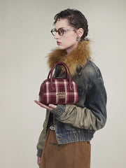 JACD Vintage Plaid Boston Bag – 2025 Autumn/Winter Designer Top-Handle & Crossbody Purse